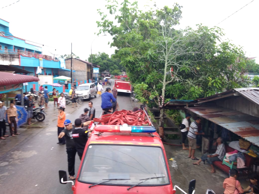 PASUKAN PEMADAM KEBAKARAN DIBAWAH KOMANDO LANGSUNG Plt. KASAT POL PP Bpk. BURHANUDDIN, SE MENGERAHKAN SELURUH MOBIL PEMADAM YANG DIMILIKI.