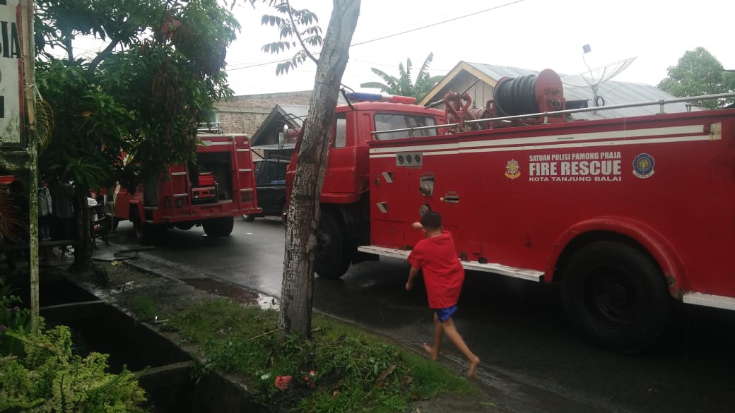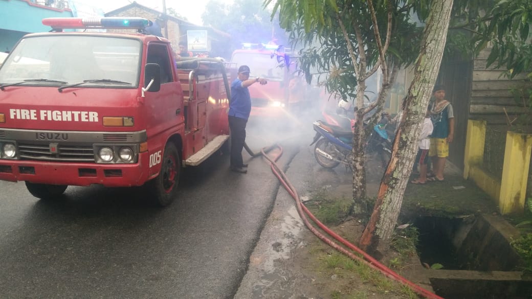 Plt. KASAT POL PP Bpk. BURHANUDDIN, SE MEMBANTU MENENANGKAN DAN MENYABARKAN KORBAN KEBAKARAN
