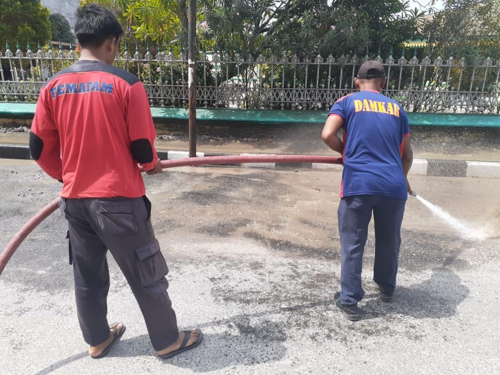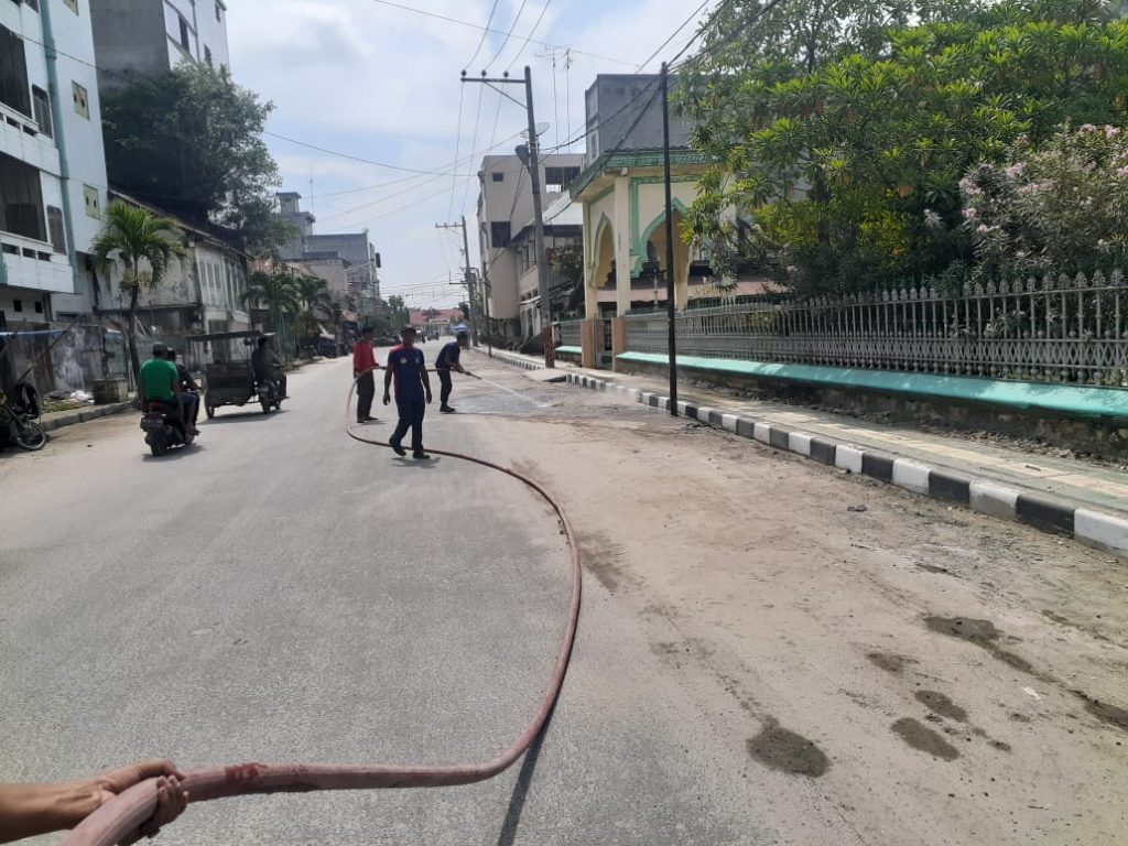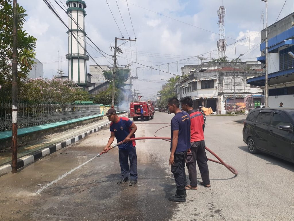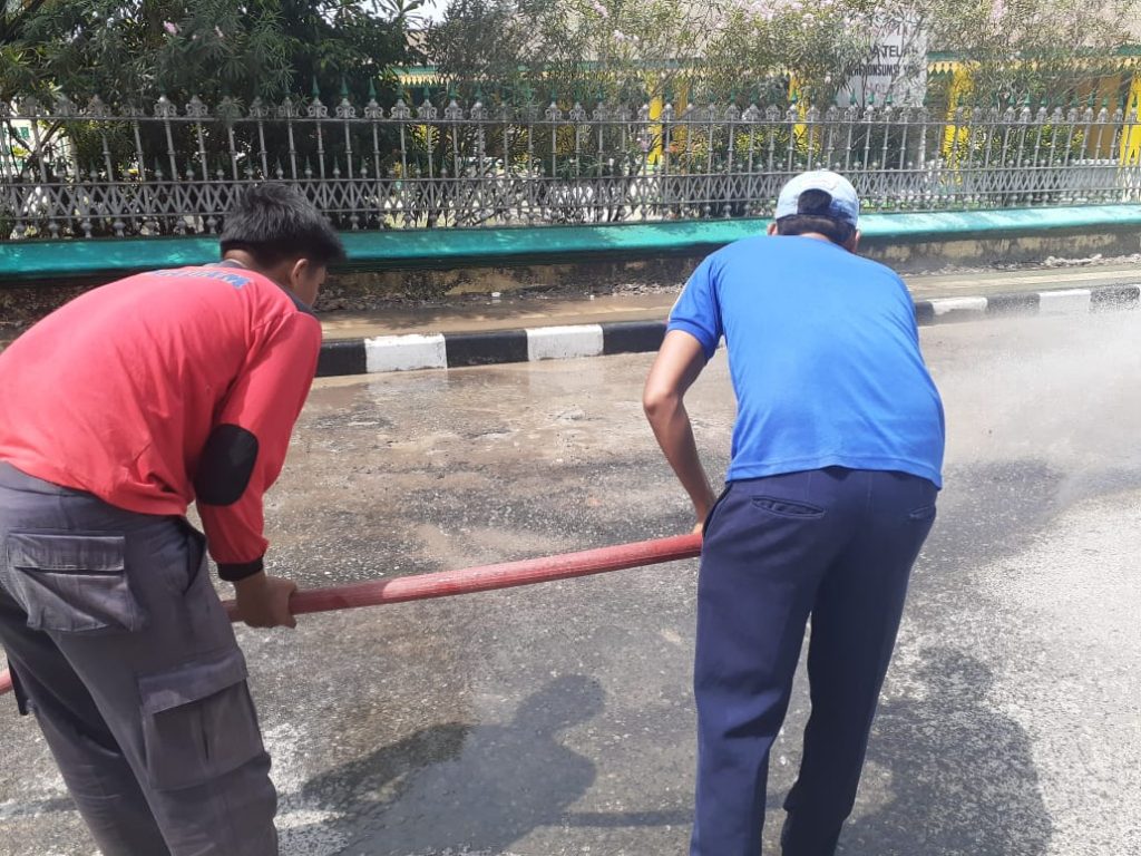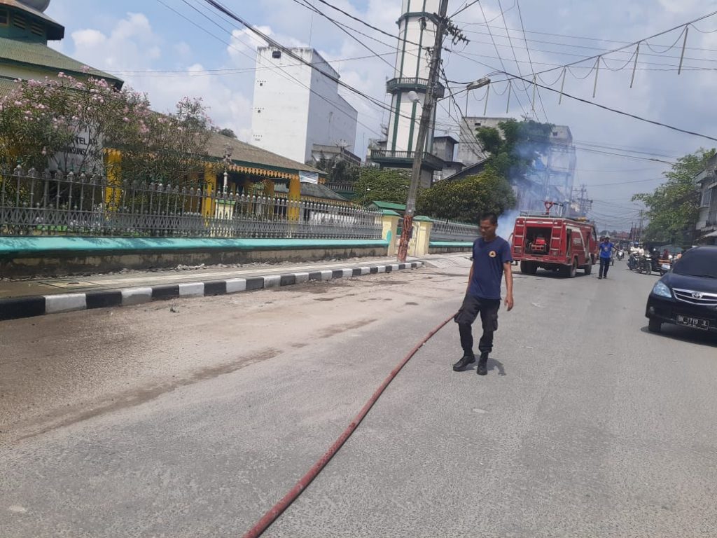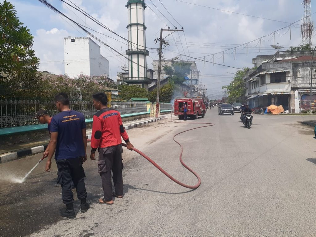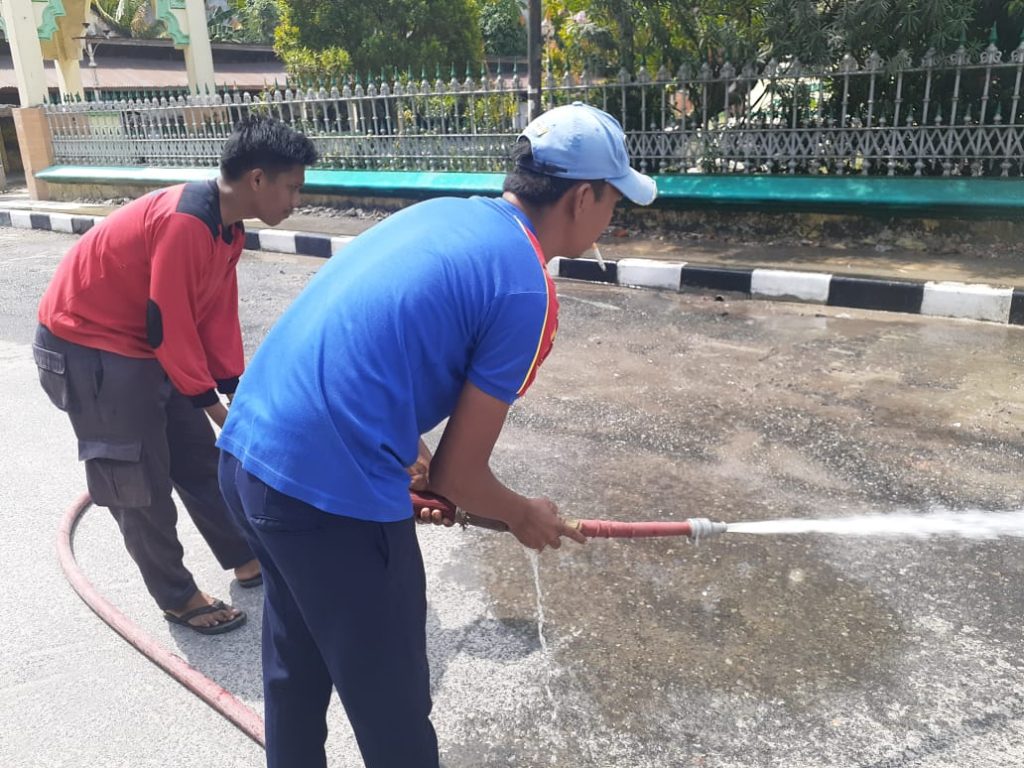KEGIATAN SATPOL PP BIDANG DAMKAR MENYIRAM JALAN UTAMA MESJI RAYA DARI TUMPUKAN DEBU GUNA MEMBERIKAN KENYAMANAN BERIBADAH DAN PENGGUNA JALAN DI SEKITAR MESJID RAYA KOTA TANJUNGBALAI KEGIATAN TERSEBUT MELIBATKAN SATU UNIT MOBIL DAMKAR. SABTU 25 JANUARI 2020 PUKUL 08.30 Wib.