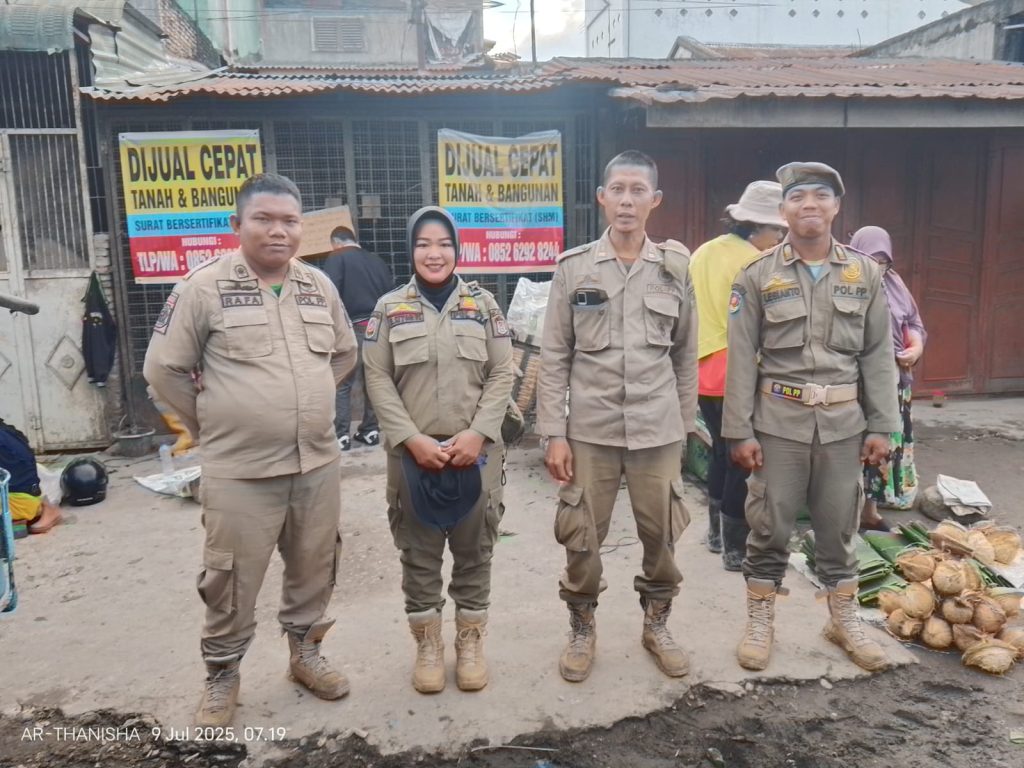 TANJUNGBALAI –  Satuan Polisi Pamong Praja Kota Tanjungbalai melakukan penertiban pedagang yang berada di Kawasan Pasar Pagi Bangsal, Rabu (09/07/2025).